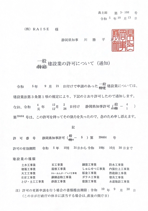 最後になりましたが、この度は当社のホームページをご覧いただき、誠にありがとうございます。個人様はもちろん、法人様もお気軽にお問い合わせください。住宅工事から公共工事まで、幅広く対応しております。藤枝市を中心とする静岡県近郊エリアで活動しておりますので、外構工事・造成工事・舗装工事など、土木一式工事は株式会社RAISEにご相談ください。